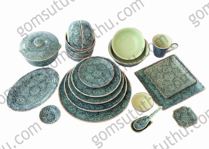 Đây là bộ đồ ăn làm bằng tay do chính nghệ nhân của Bát Tràng sản xuất.