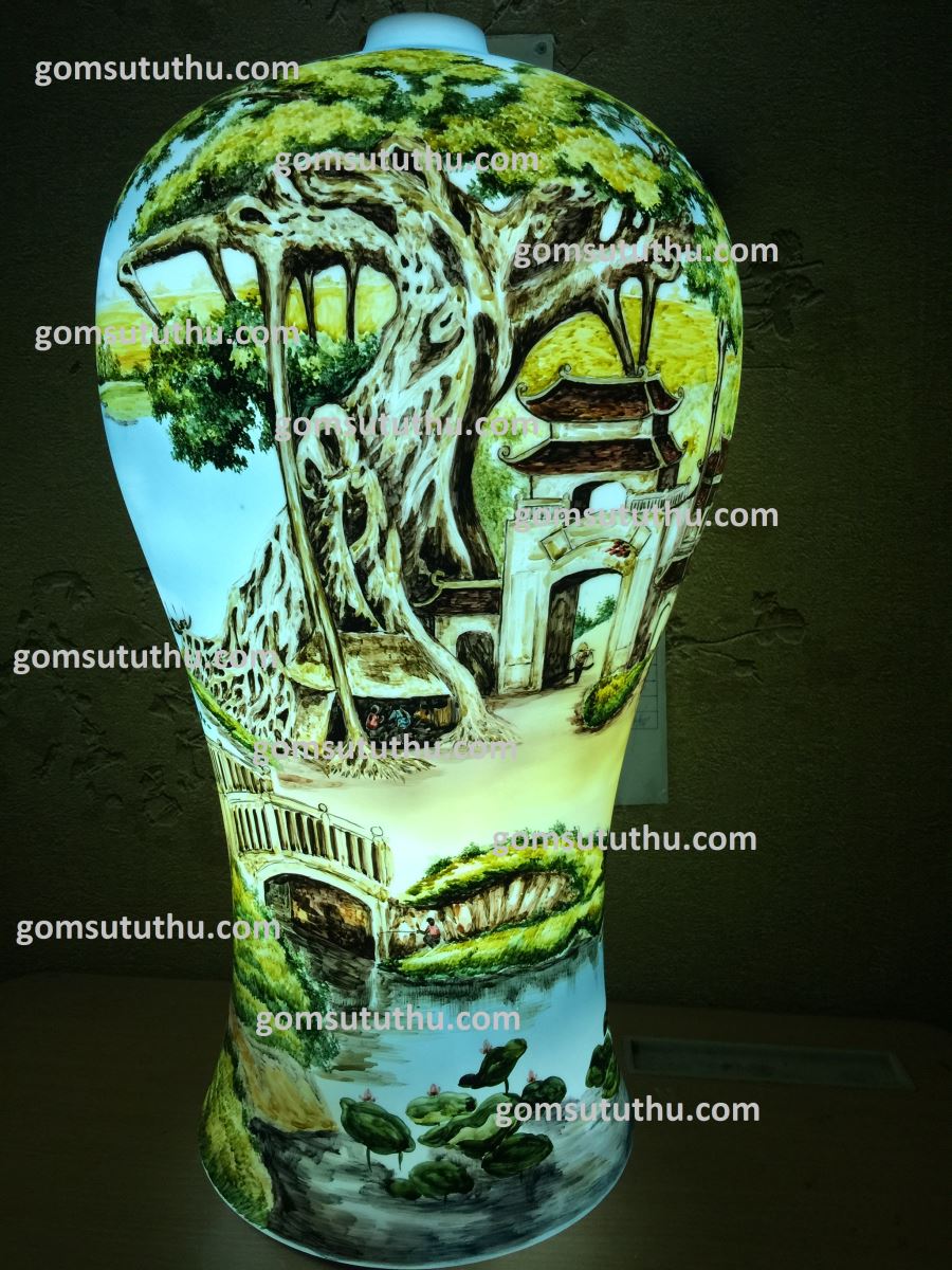 Đèn dáng mai bình cảnh quê hương Kích thước : 32*65